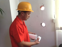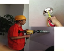 步驟七:根據(jù)標(biāo)記開出通風(fēng)孔并測(cè)量墻體厚度
